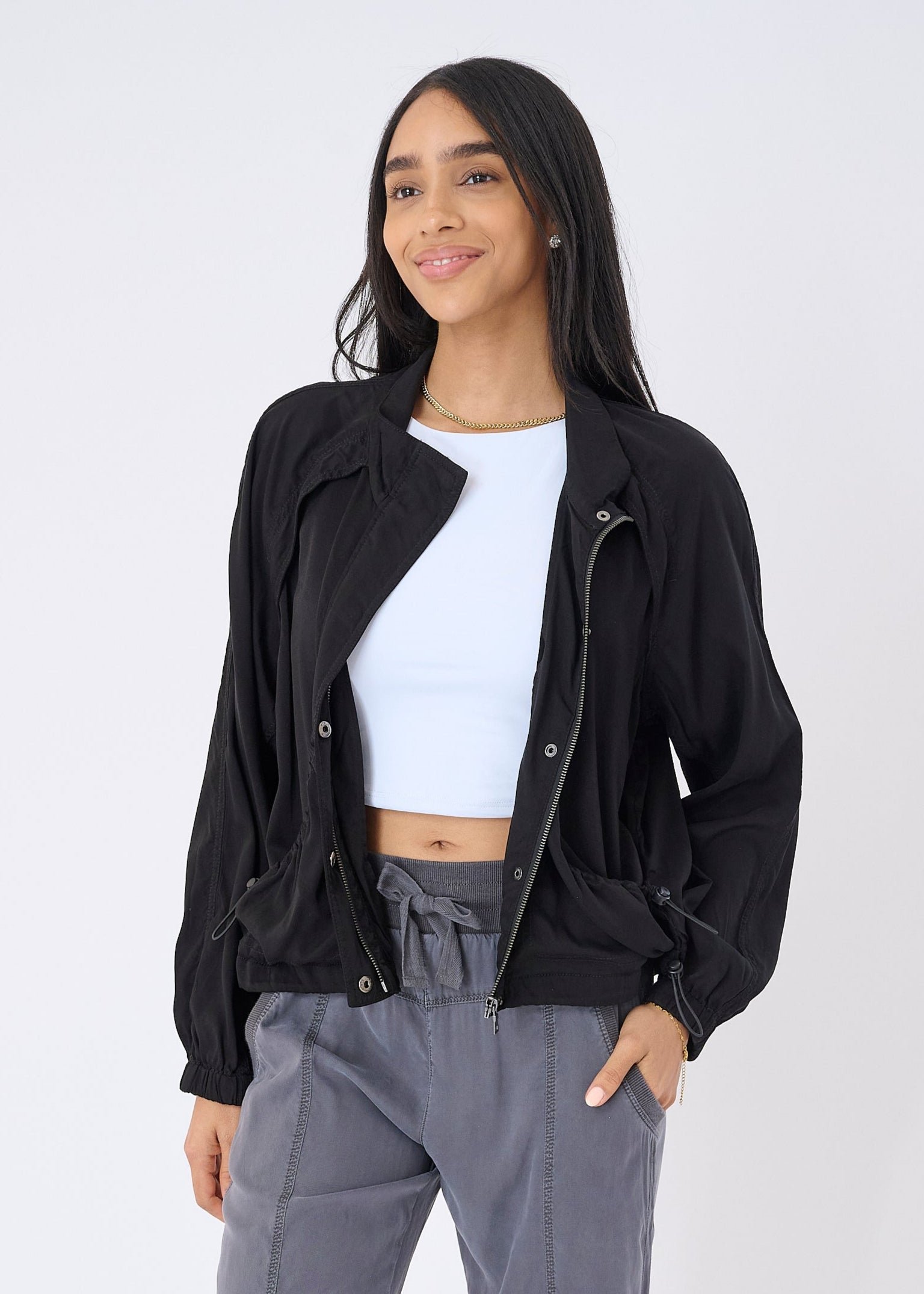 The Bali Stretch Cupro Windbreaker Jacket isn’t just lightweight and functional—it’s a style statement. Perfect for layering across seasons. it’ll keep you looking sharp while cutting the chill.