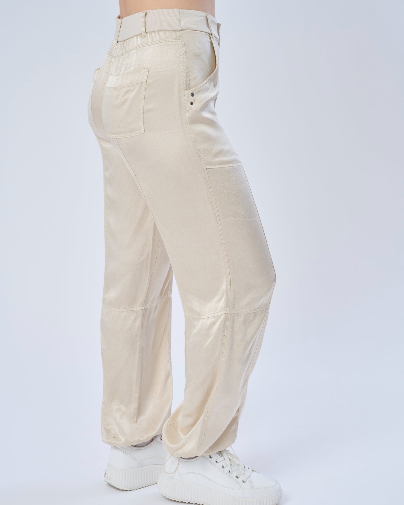 Silky Meets Streetwise: Made from ultra-soft viscose satin. this pant feels luxurious yet wears like your favorite utility piece.