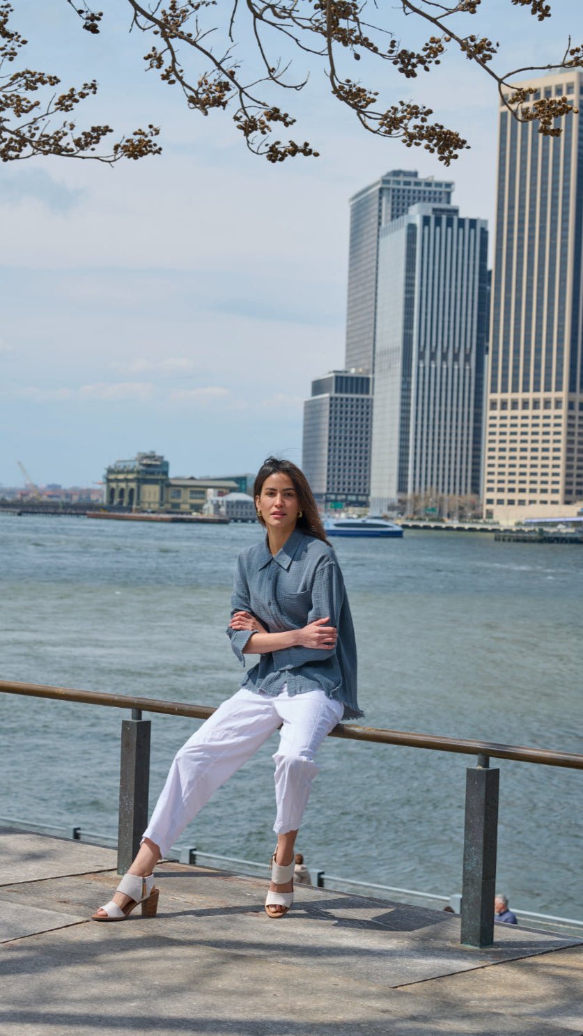 What sets it apart? A European-style placket with buttons on the right side—offering a sophisticated departure from the typical American left-side button closure on womens shirts. It’s a subtle detail. but one that adds a refined. tailored touch to an otherwise laid-back silhouette.