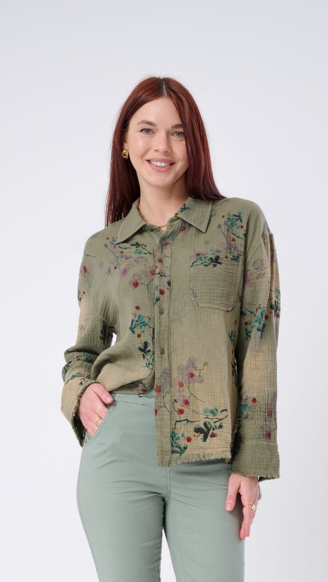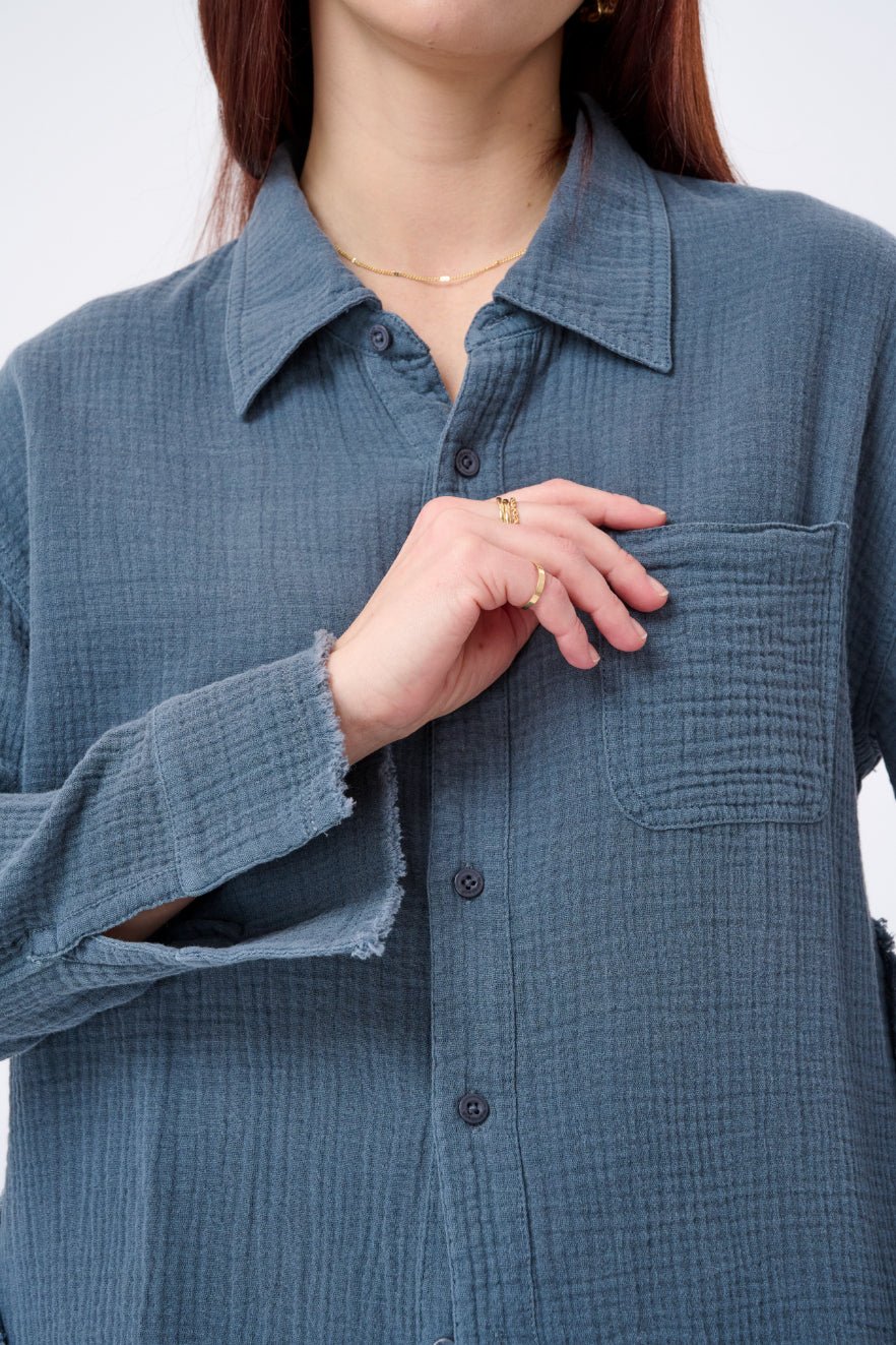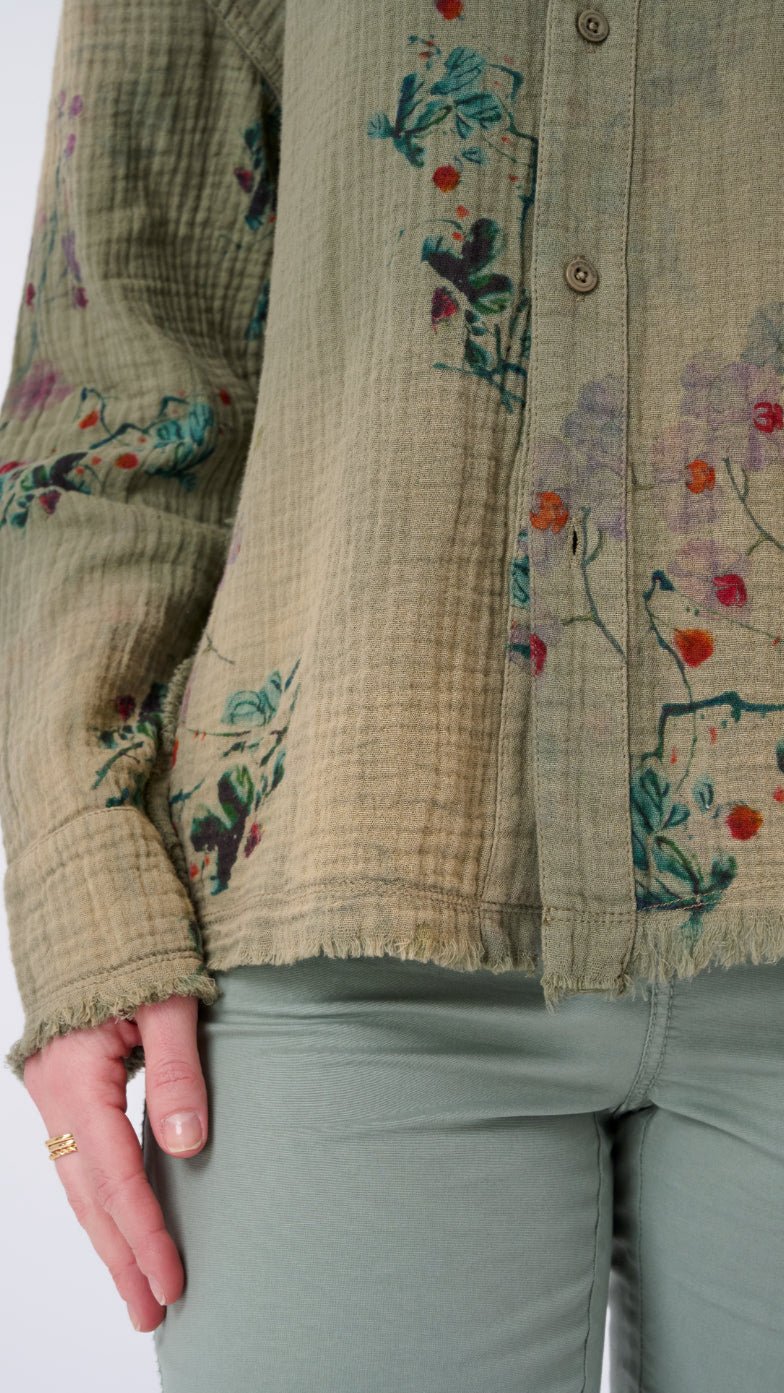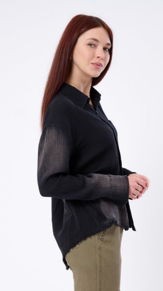 Whether youre layering it over a tank. styling it with denim. or wearing it open as a breezy third piece. this shirt is your answer to everyday. effortless versatility.