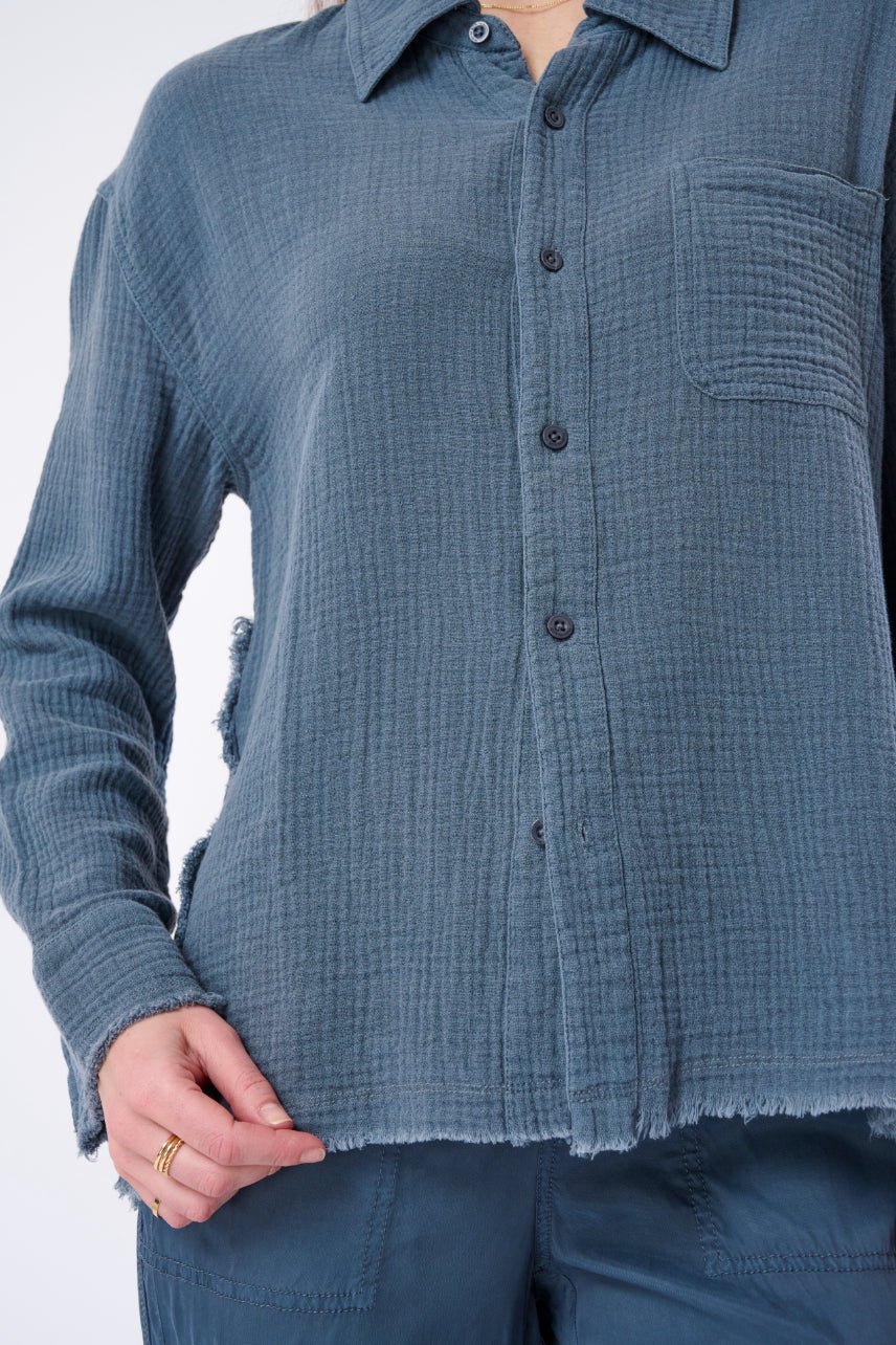 - Laid-Back Details: The frayed edges and left-side breast pocket give it an easy. lived-in feel that only gets better with wear.