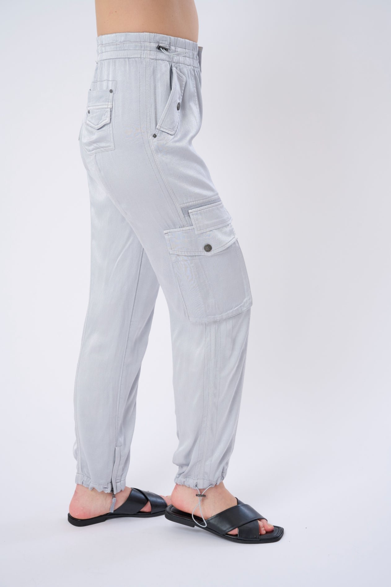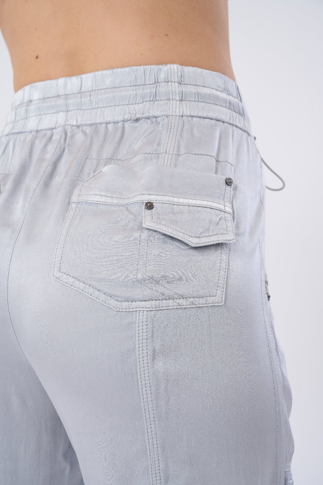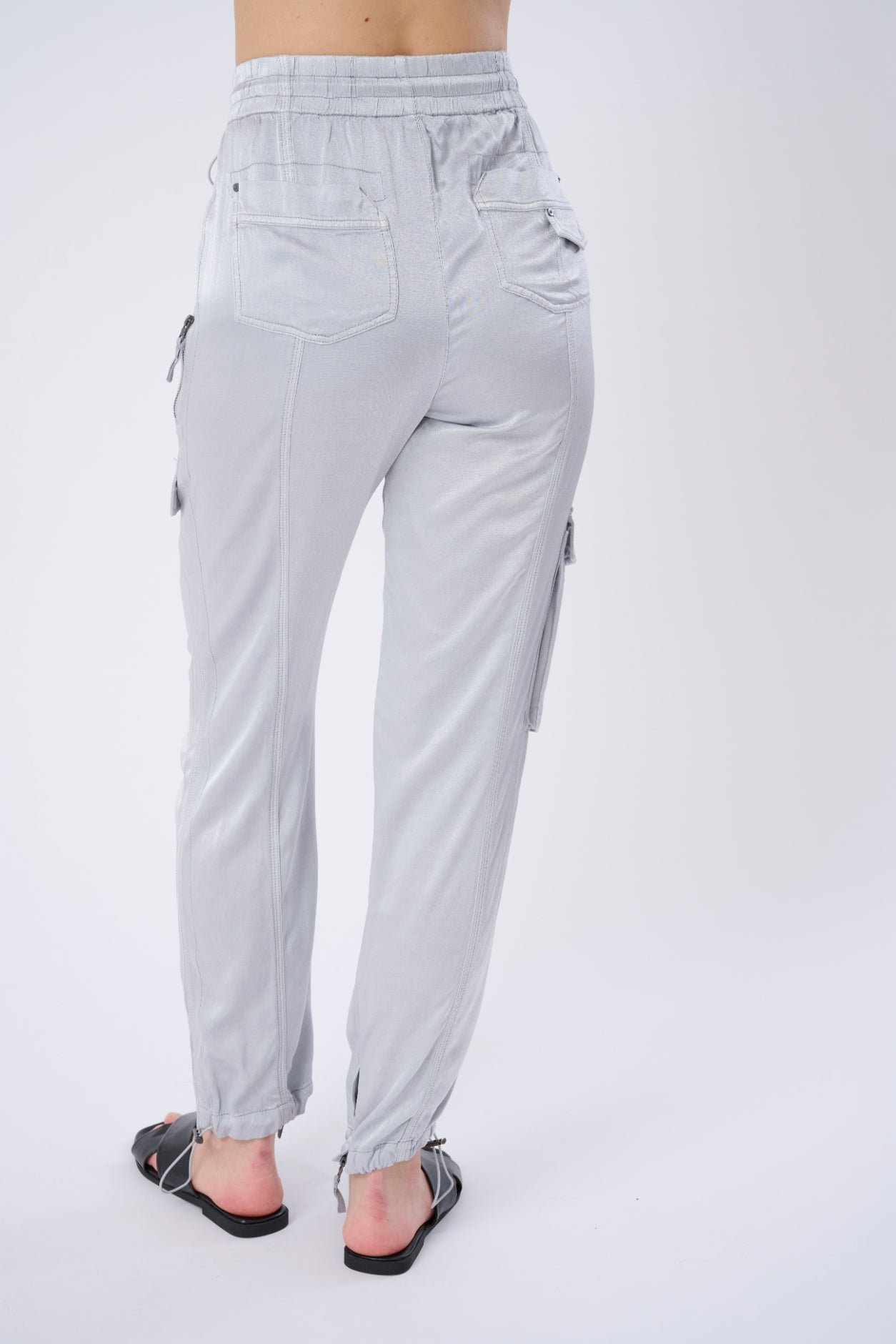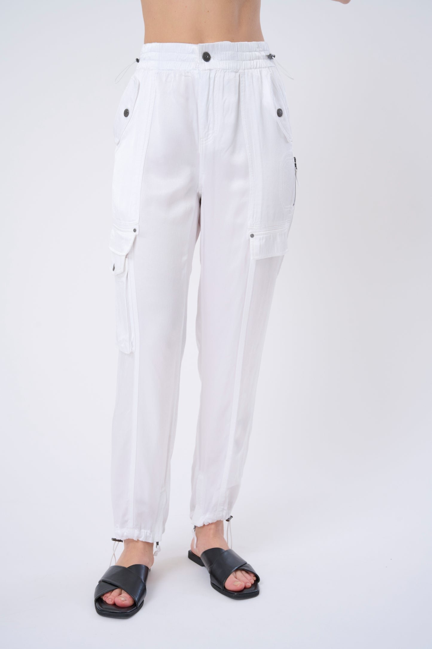 Meet the Nyra Pull-On Viscose Satin Cargo Pant. where laid-back ease meets elevated style. Designed with a smooth satin-soft finish and functional cargo details. these pants bring effortless sophistication to your everyday wardrobe. Featuring an elastic waistband with adjustable toggles for a personalized fit and utility pockets with snap button details. they blend comfort with a modern edge. Whether youre running errands. heading to brunch. or dressing up for a night out. these cargo pants offer versatility with a touch of luxury.