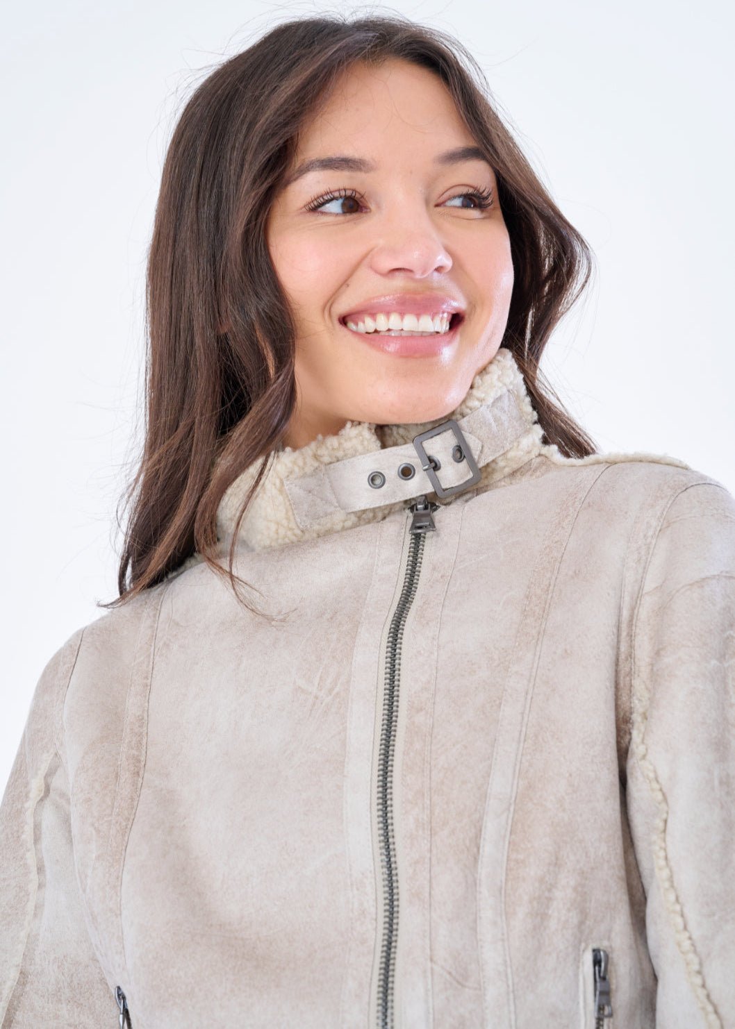 Osha Faux Shearling Distressed Scuba Suede Biker Jacket