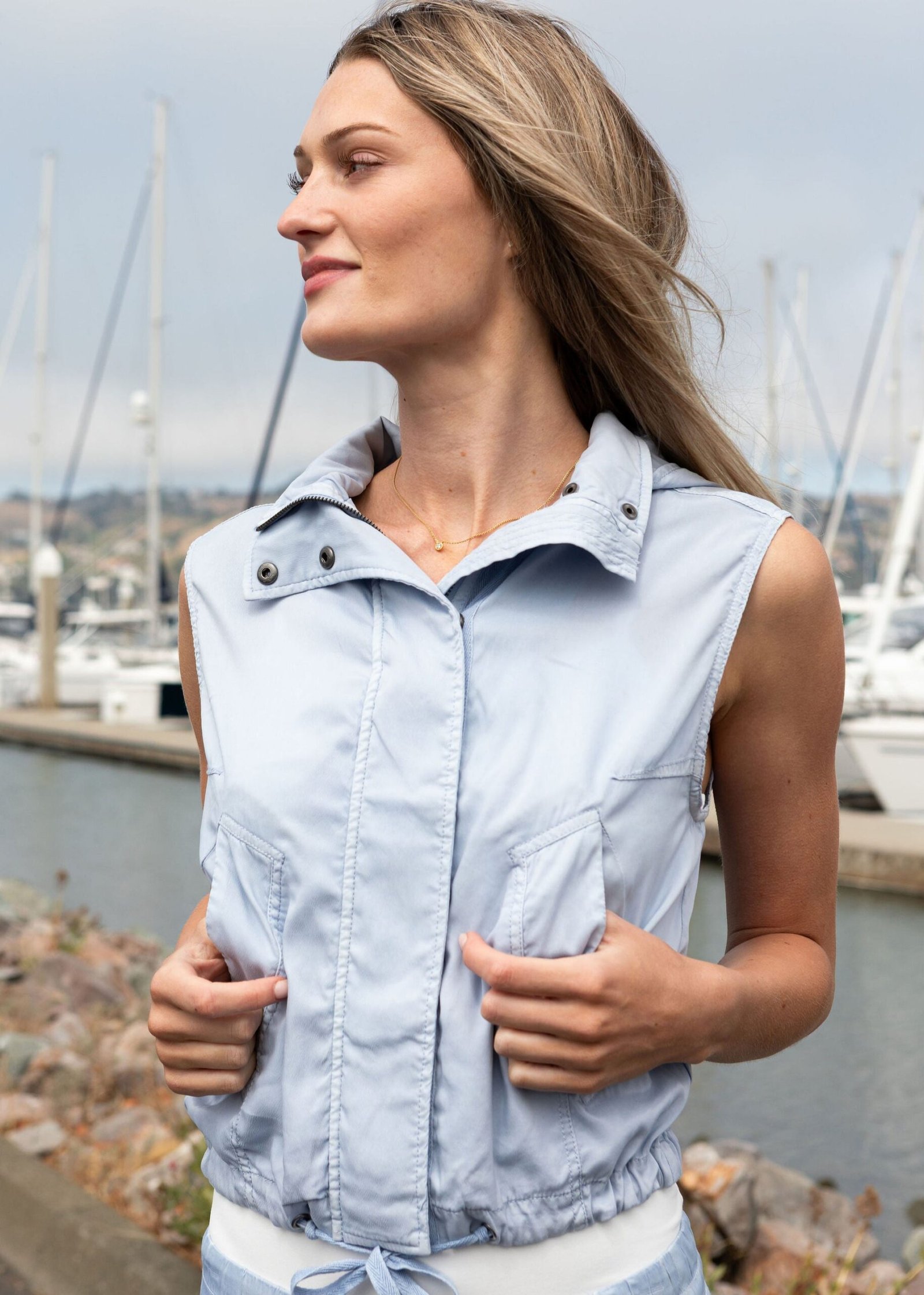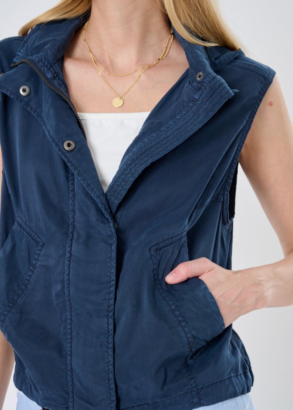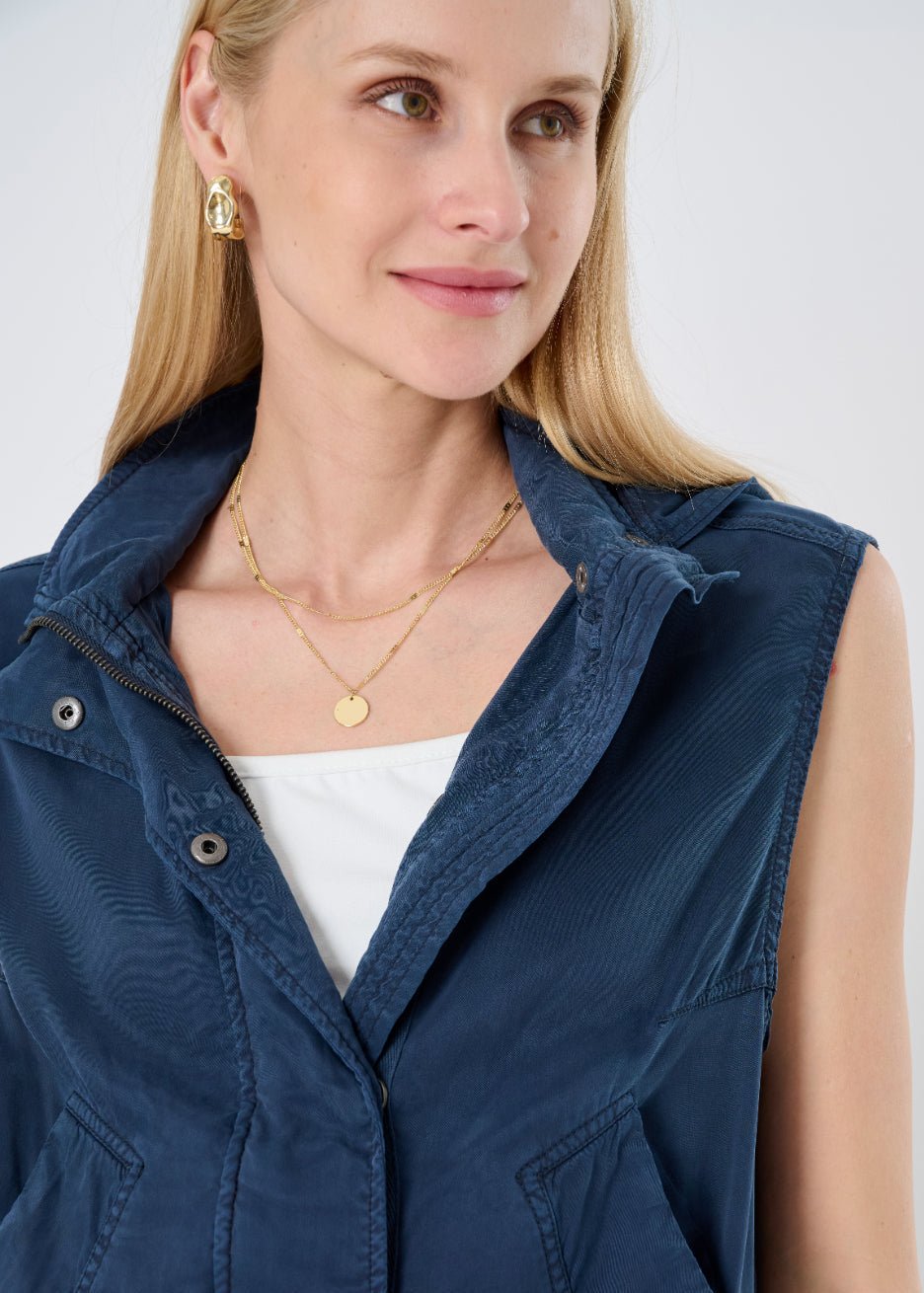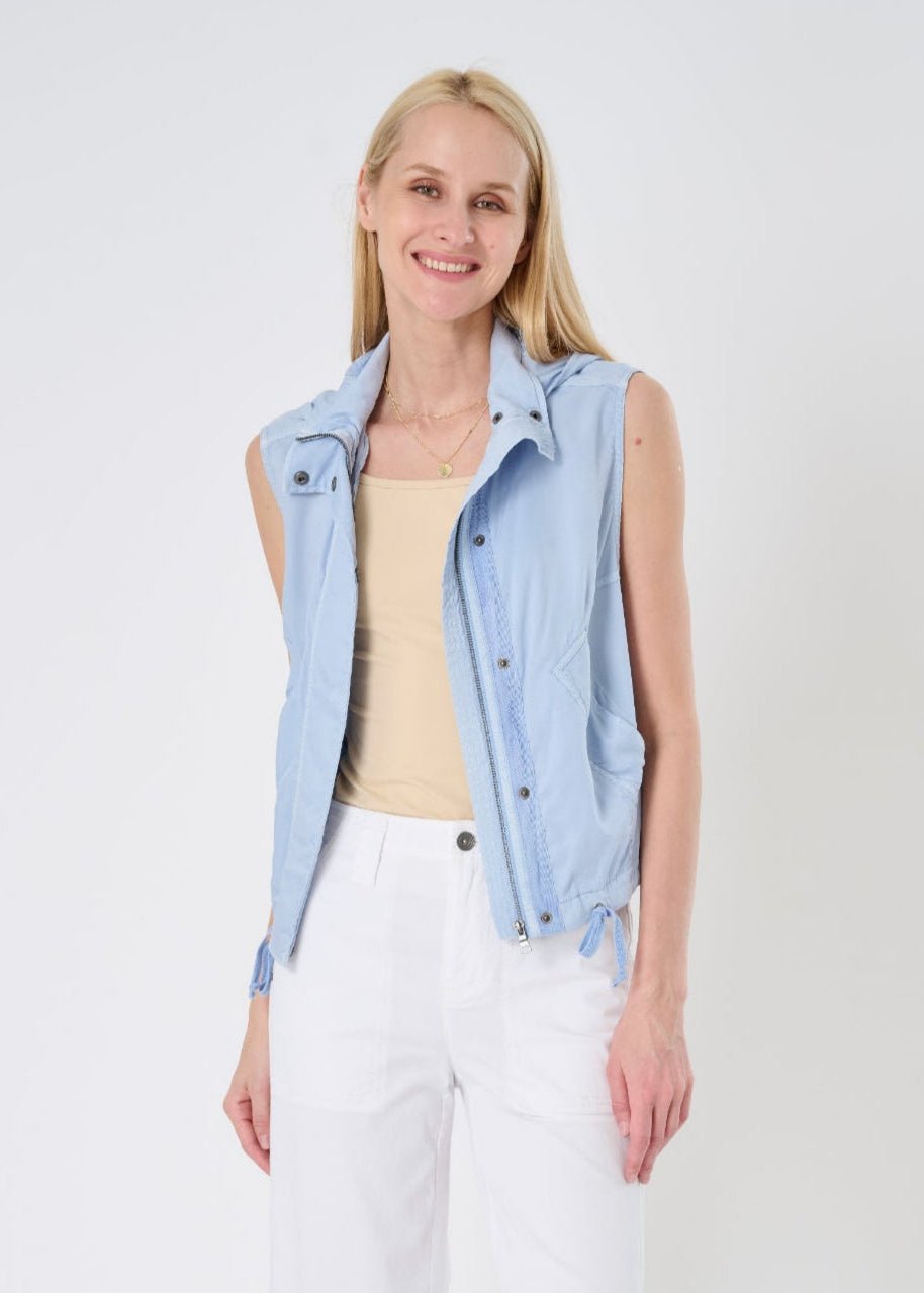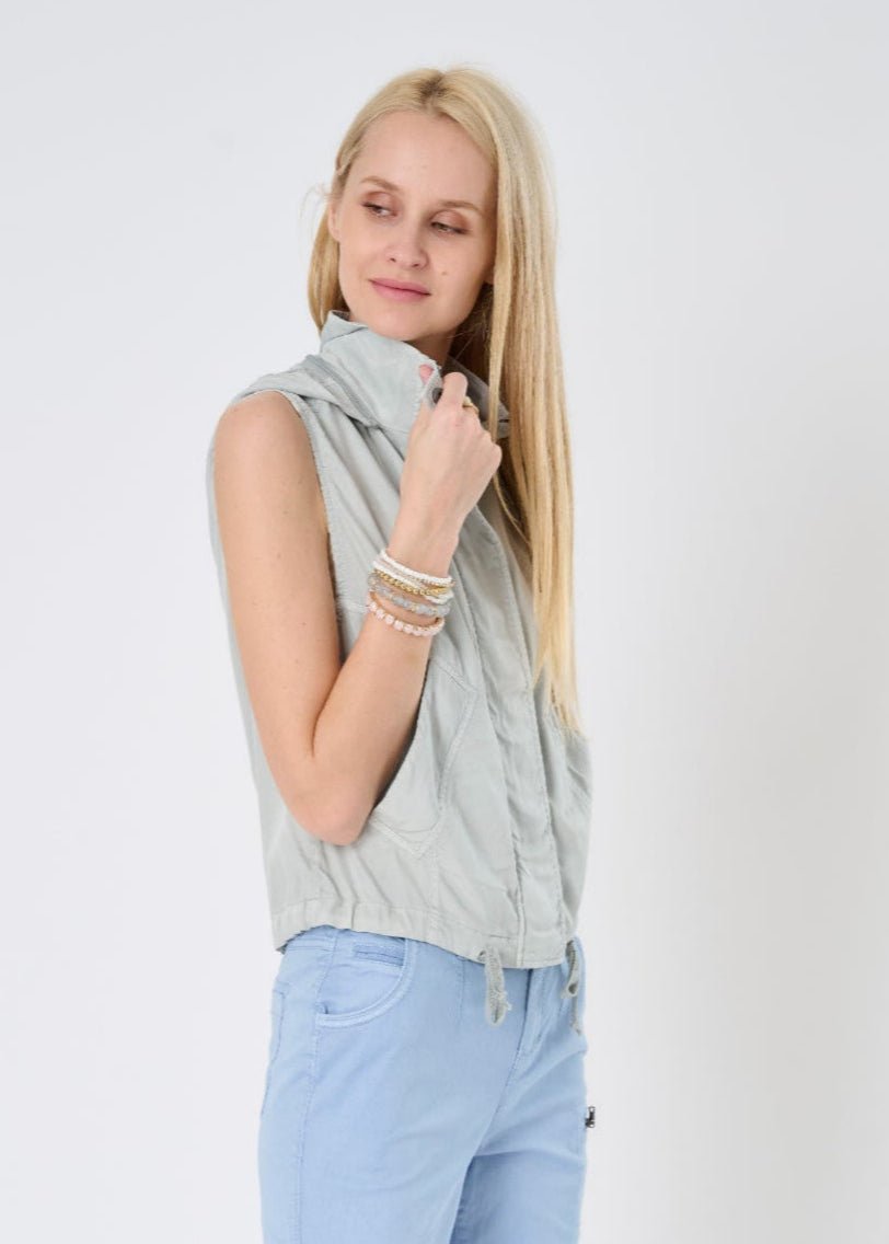 The Tahiti Stretch Cupro Vest with Removable Hood is a warm-weather layering hero. crafted in a luxe. lightweight cupro that’s breathable. smooth to the touch. and quietly refined. With generous armholes for easy styling and a drawstring waist that lets you define your shape. it moves with grace from laid-back weekend to polished day out.