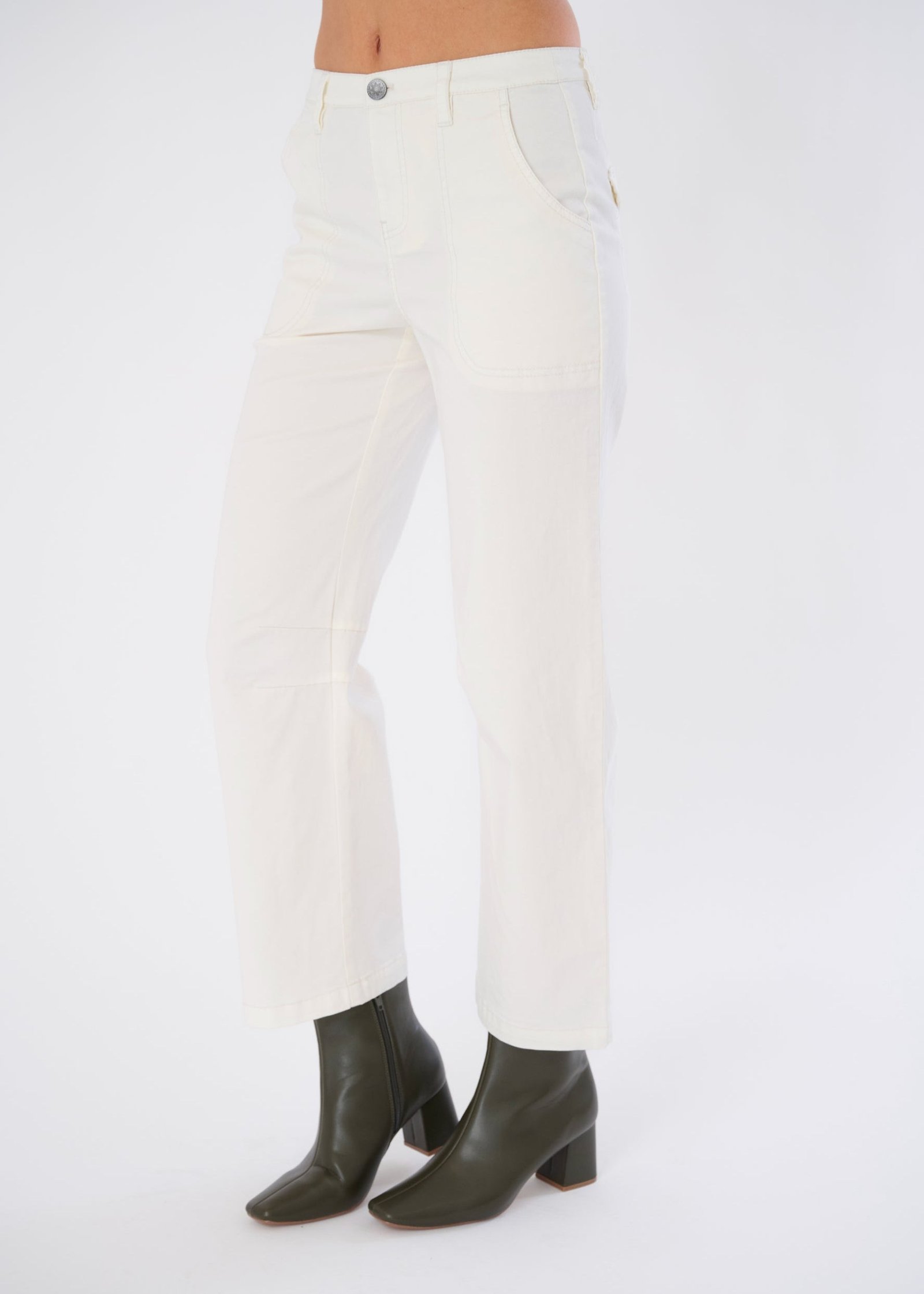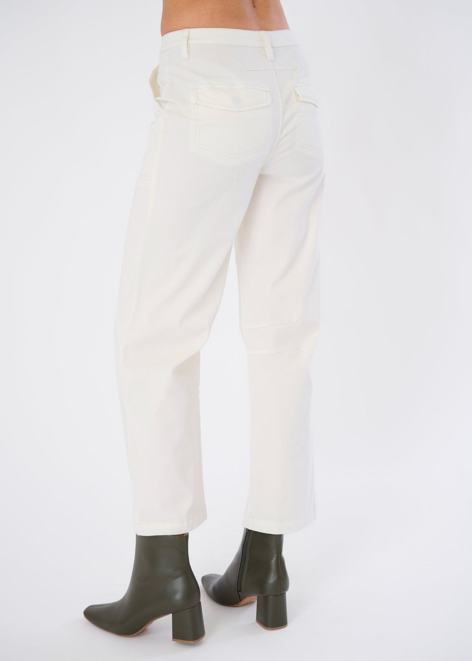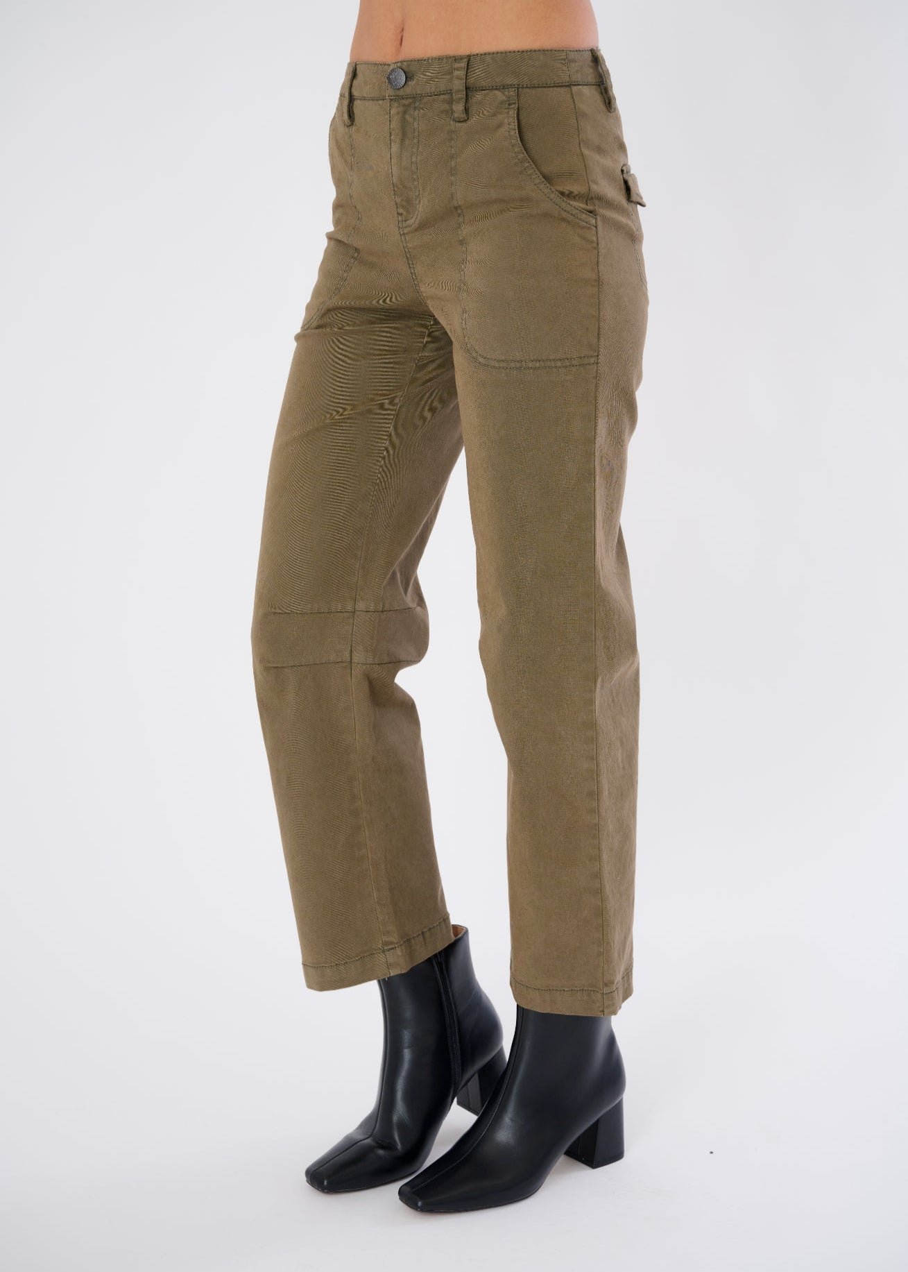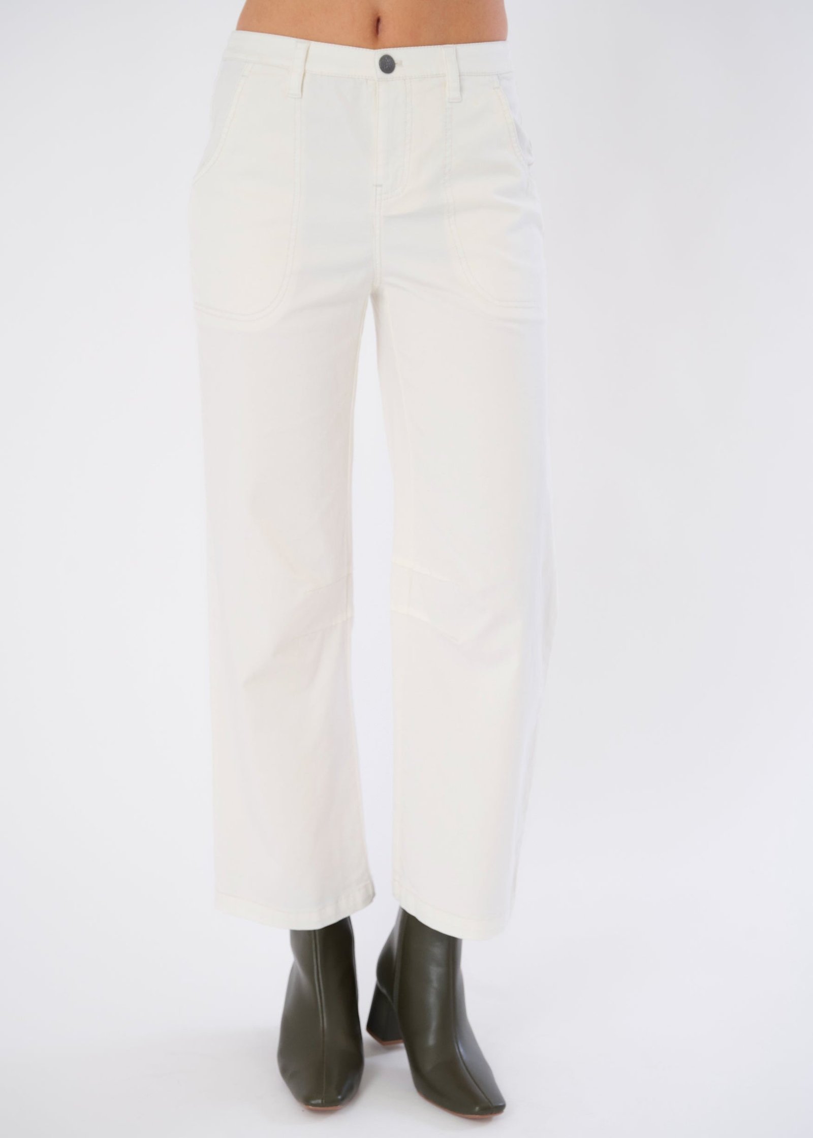 Polished Utility: Full pocket functionality plus snap-button detailing gives this pant real-world elegance.