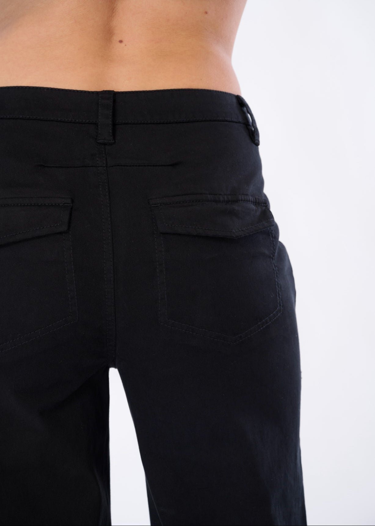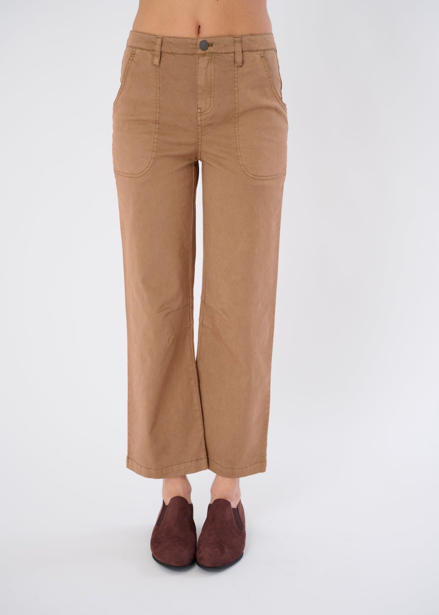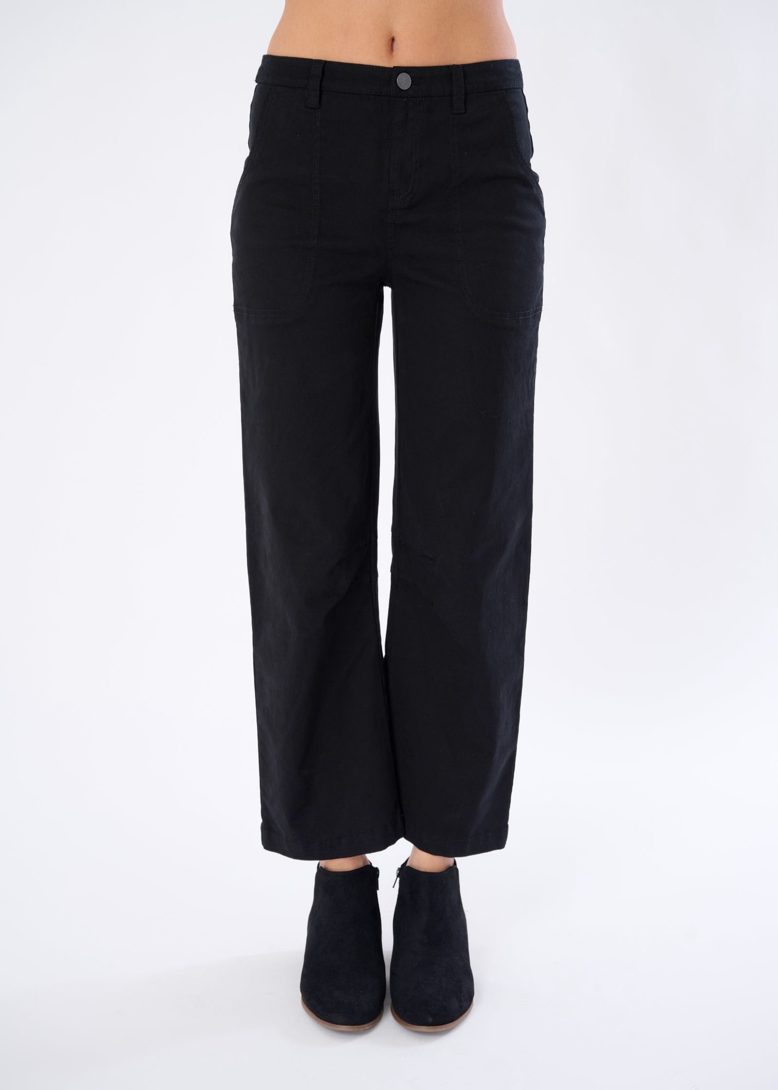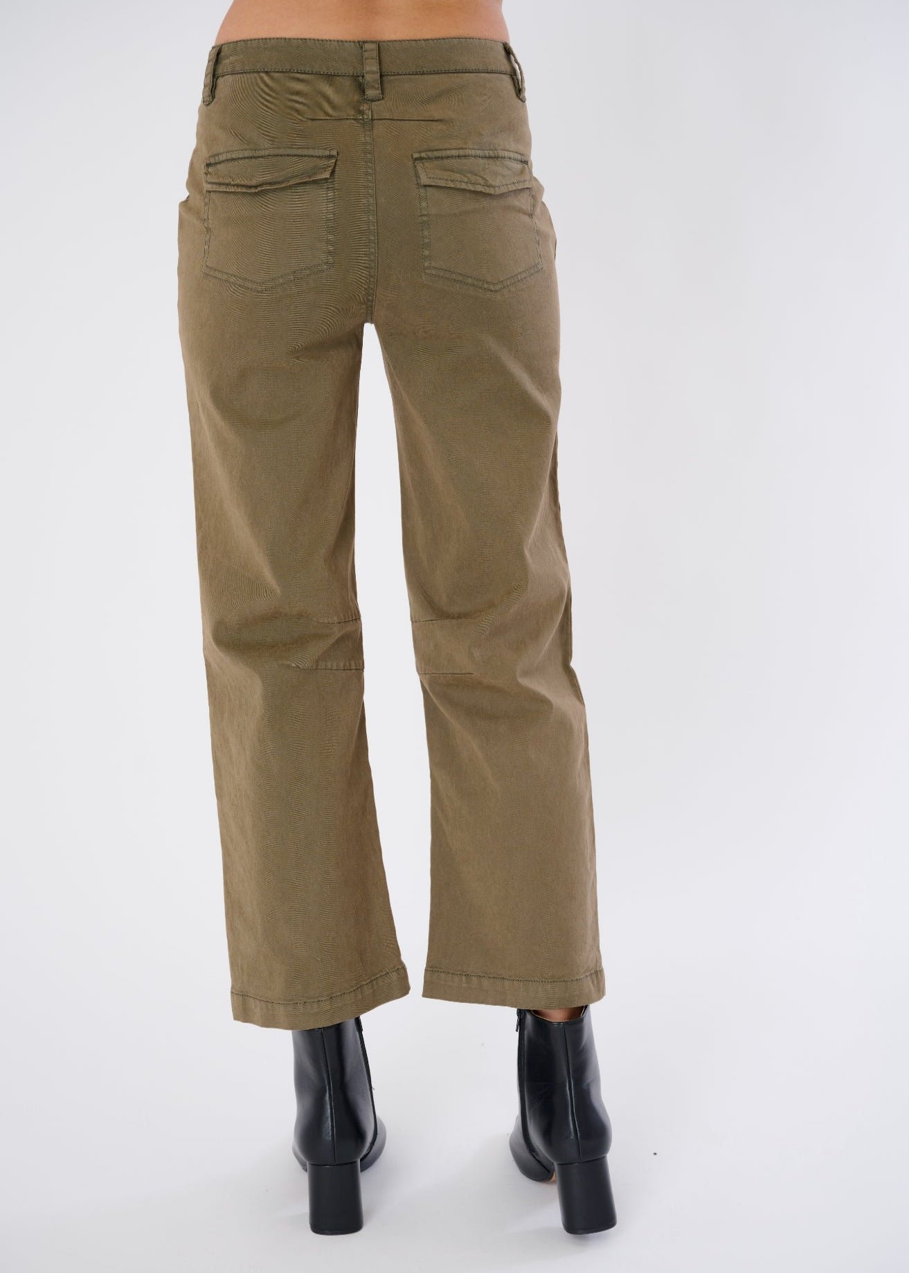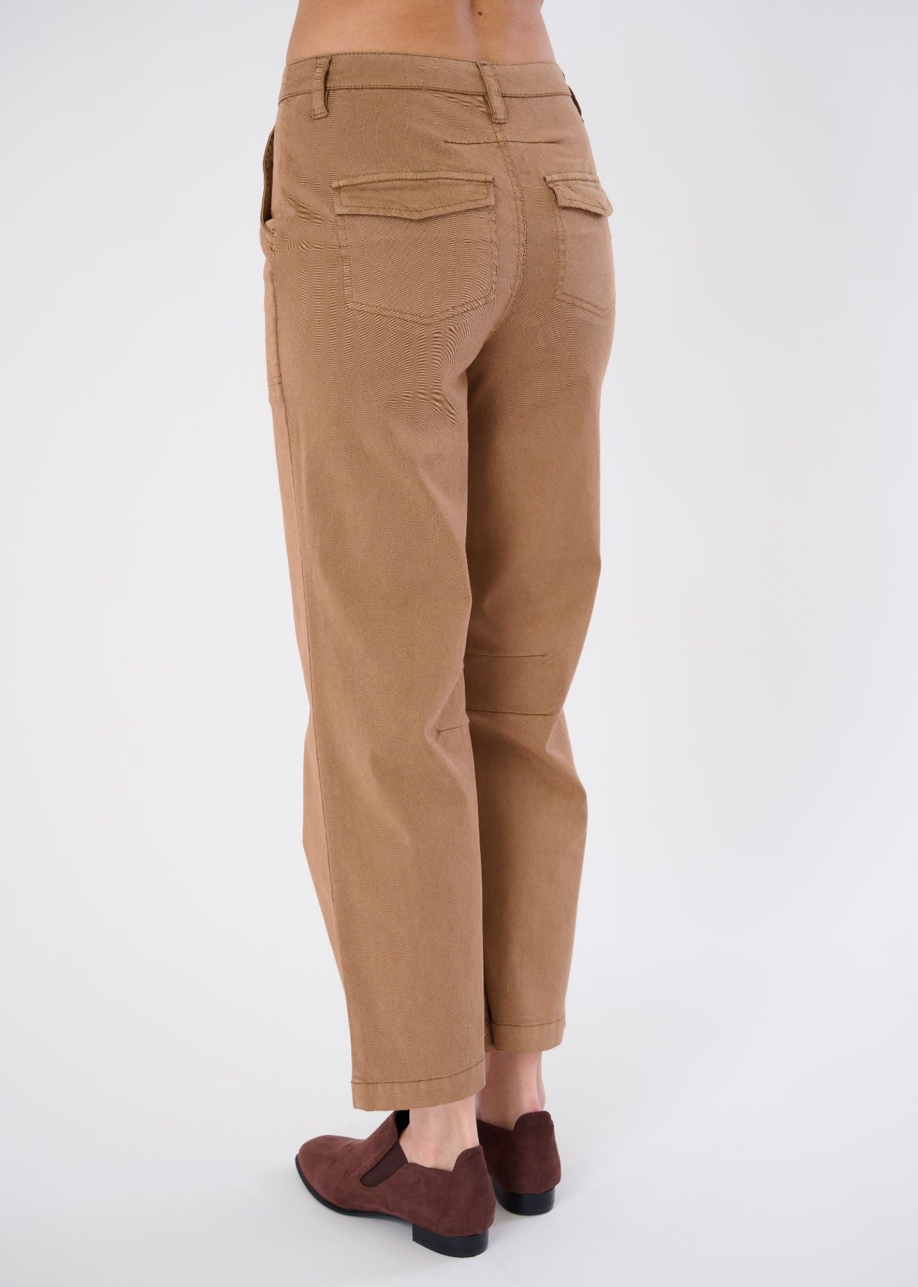 Polished Utility: Full pocket functionality plus snap-button detailing gives this pant real-world elegance.